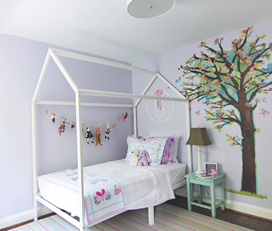 A fresh, clean design with a coastal palate that feels comfortable and spacious, and boasts whimsical charm that never feels tired. And oh, do we love the shiplap on the feature wall and fireplace wall in the Family Room!