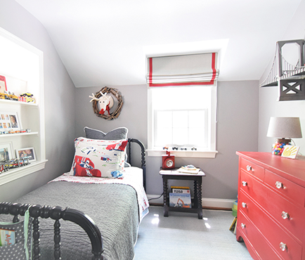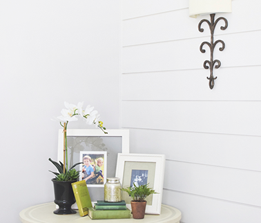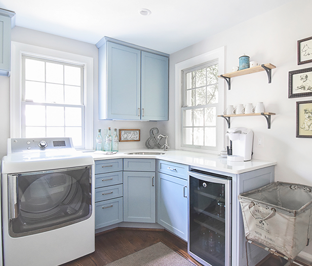 A fresh, clean design with a coastal palate that feels comfortable and spacious, and boasts whimsical charm that never feels tired. And oh, do we love the shiplap on the feature wall and fireplace wall in the Family Room!